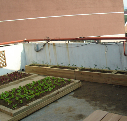 텃받만 그냥 있는것이 좀 썰렁해 보여서 주위에 데크도 놓고 주변에 추가적으로 텃밭을 위한 플랜터를 놓았습니다.